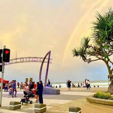 Een oven en een vaatwasser zijn er beschikbaar in een ingerichte keuken van deze accommodatie. Greyhound Terminal Surfers Paradise bushalte bevindt zich op 5 minuten wandelen van deze 1-badkamer accommodatie.
